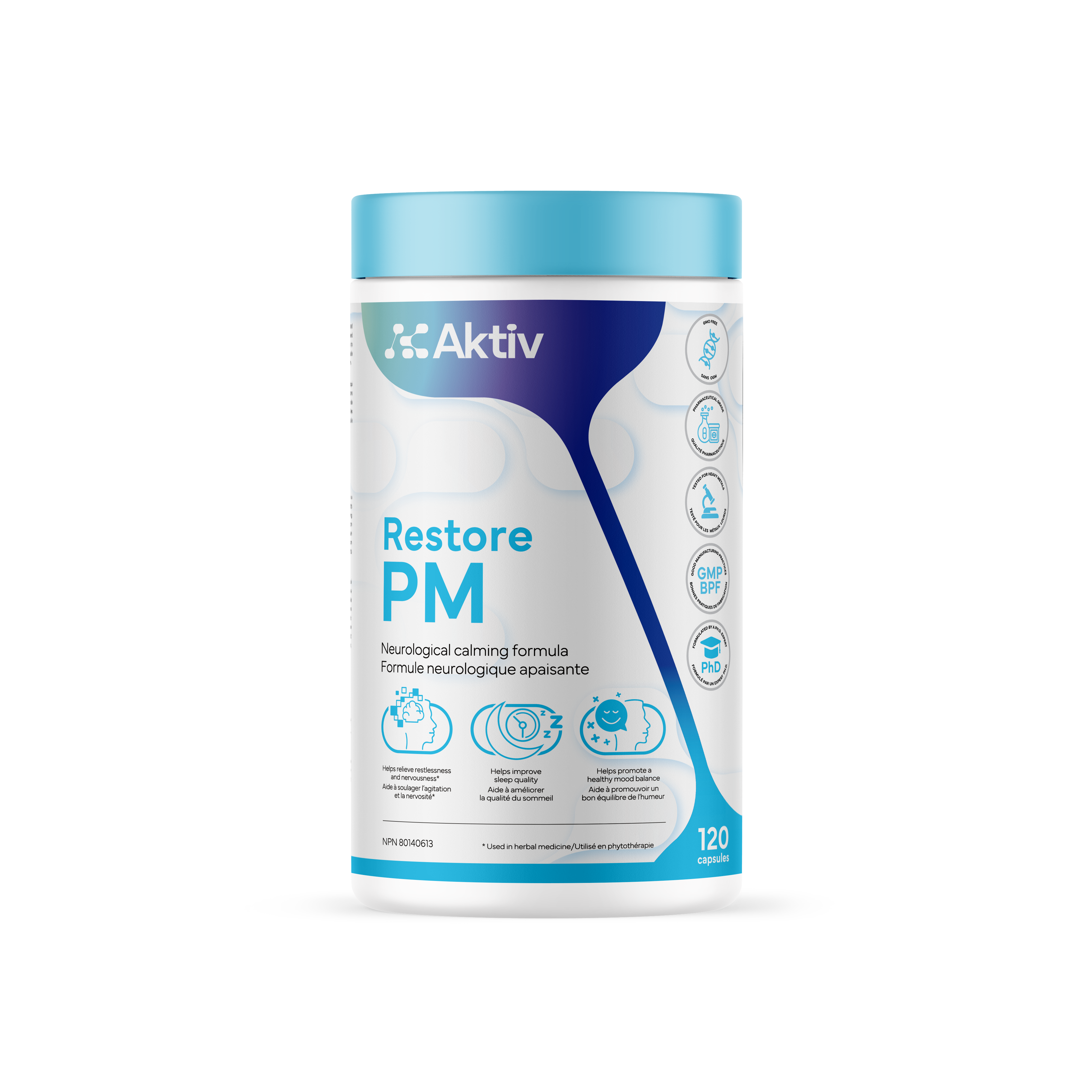 Formulated by a Ph.D. expert, tested for heavy metals, GMO-free, and manufactured following pharmaceutical-grade standards, Restore PM is your evening ally for sustainable wellness.